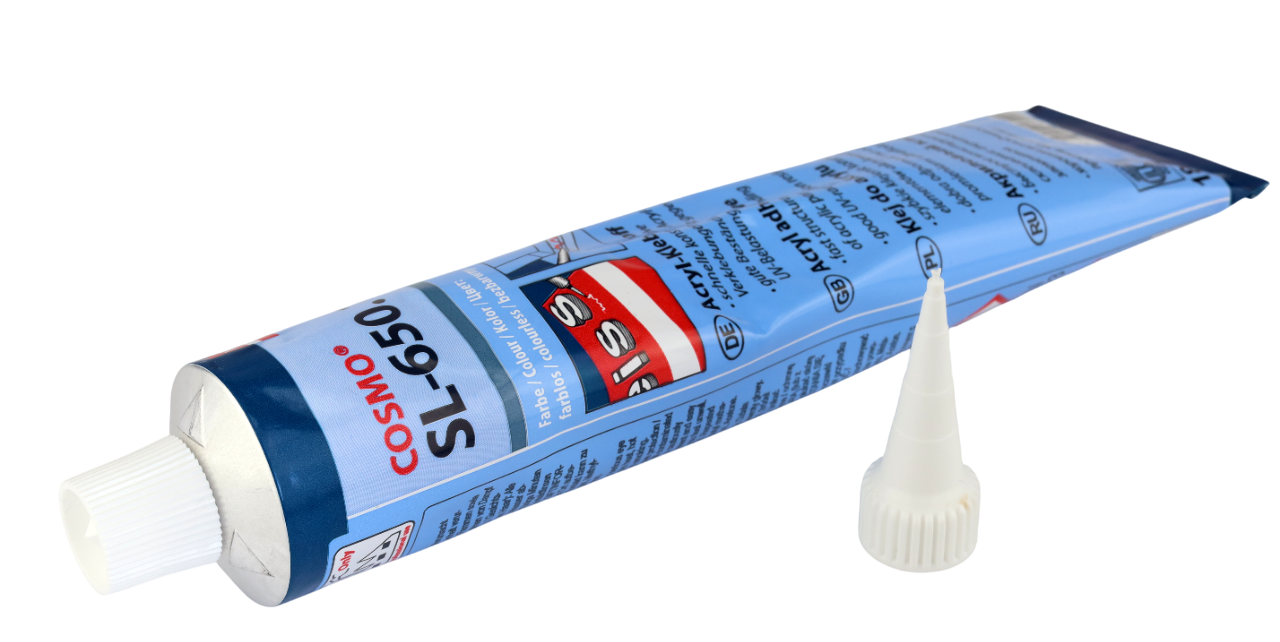 COSMO SL-650.120 прекрасно подходит для быстрого конструкционного склеивания деталей из акрила и отличается, прежде всего, хорошей устойчивостью к тепловым нагрузкам и к УФ-нагрузке.