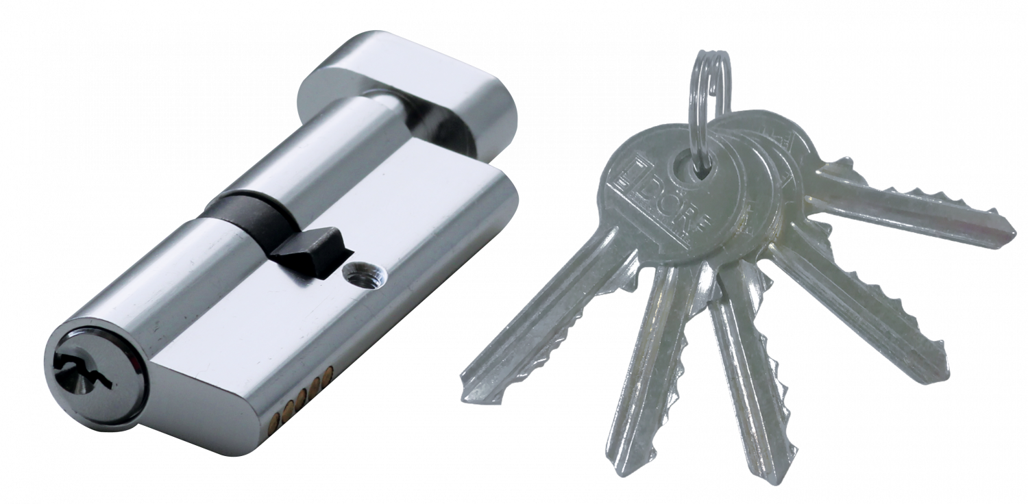 DÖRF, Цилиндр замка ключ/БАРАШЕК,английский,5 ключей,никель 45*45(1к-10шт) |