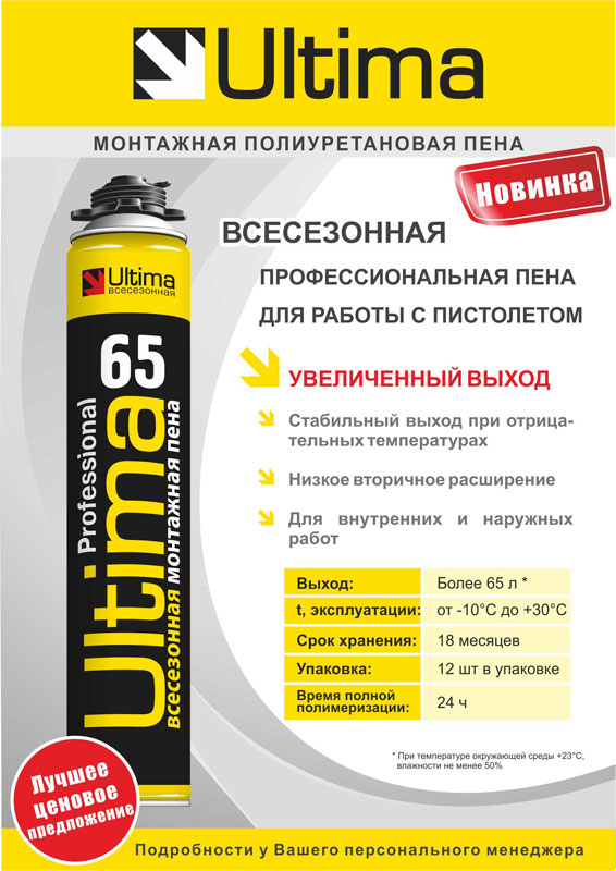 —Новинка! Профессиональная Всесезонная монтажная пена для использования с пистолетом – Ultima pro 65.